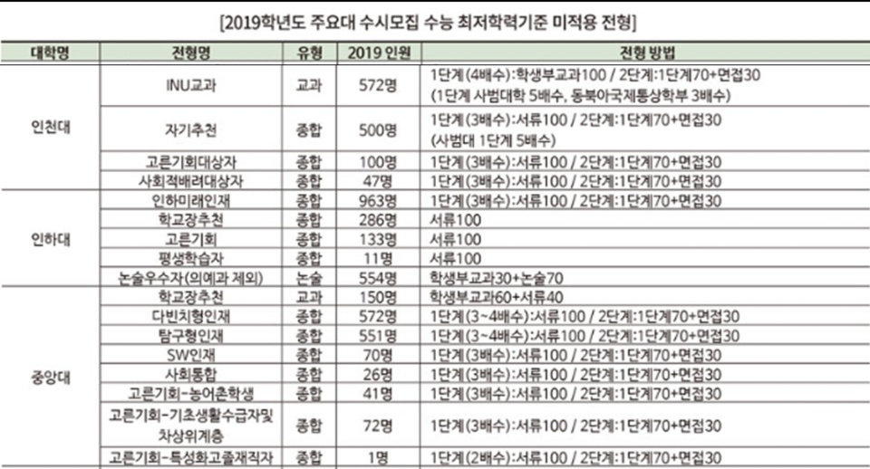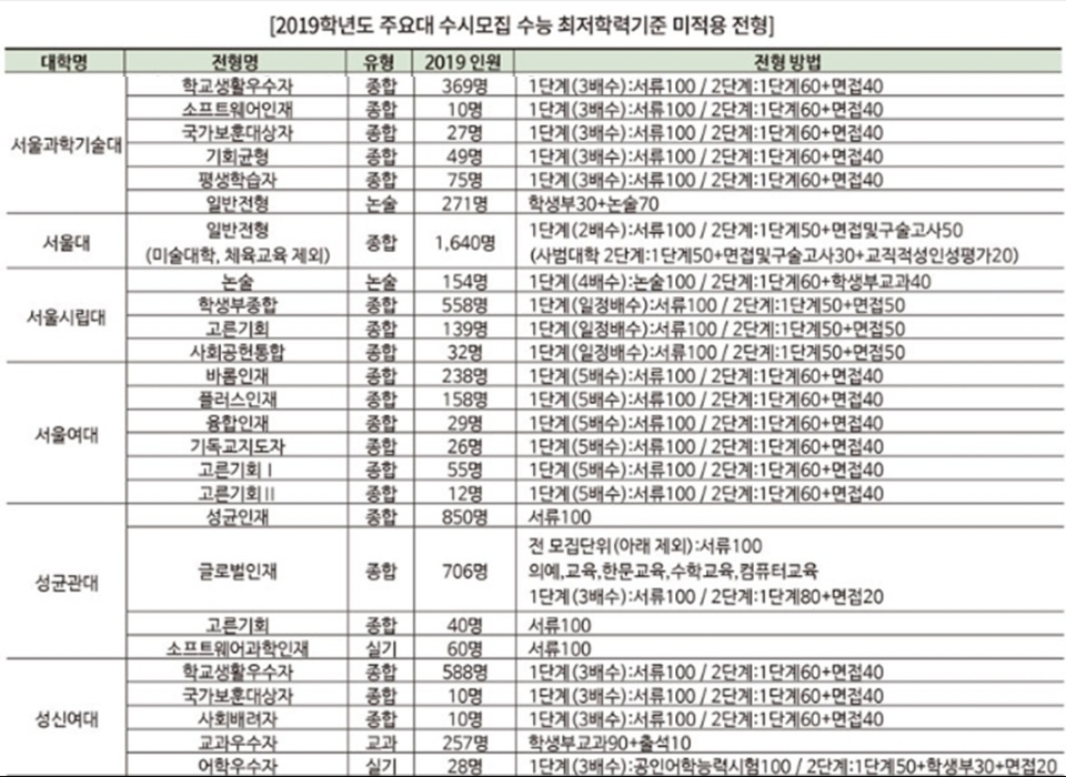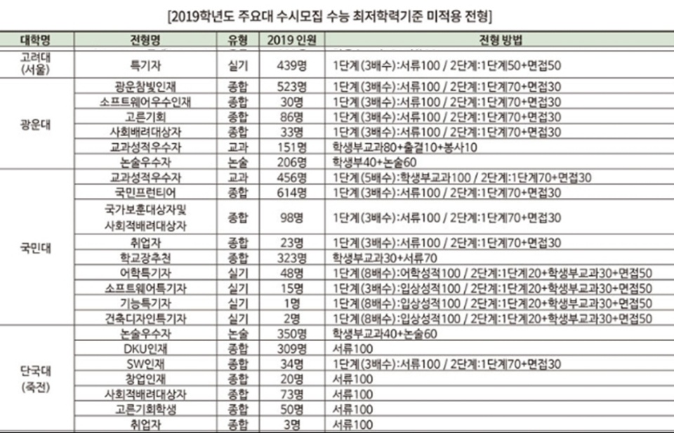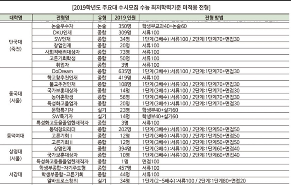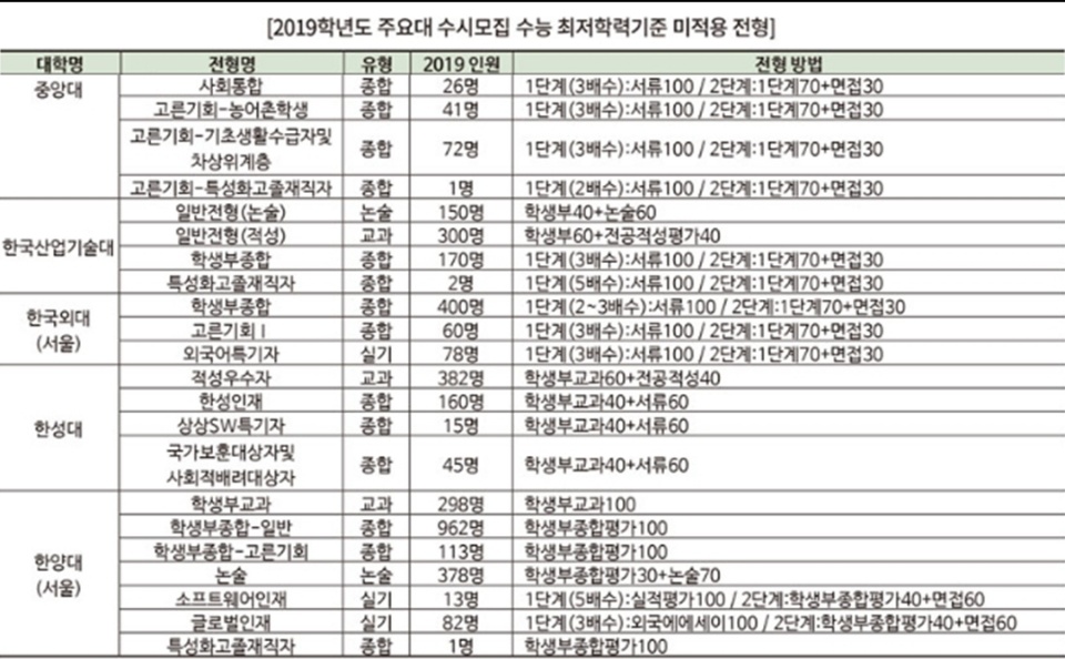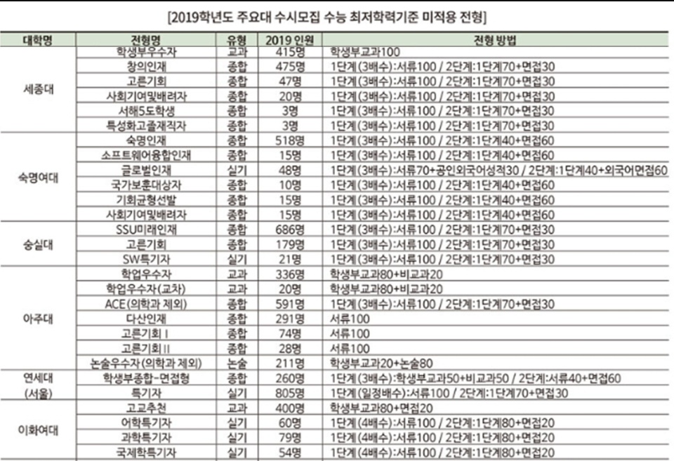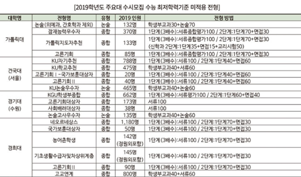 -2019학년도 수시 수능 최저학력기준 미적용 전형